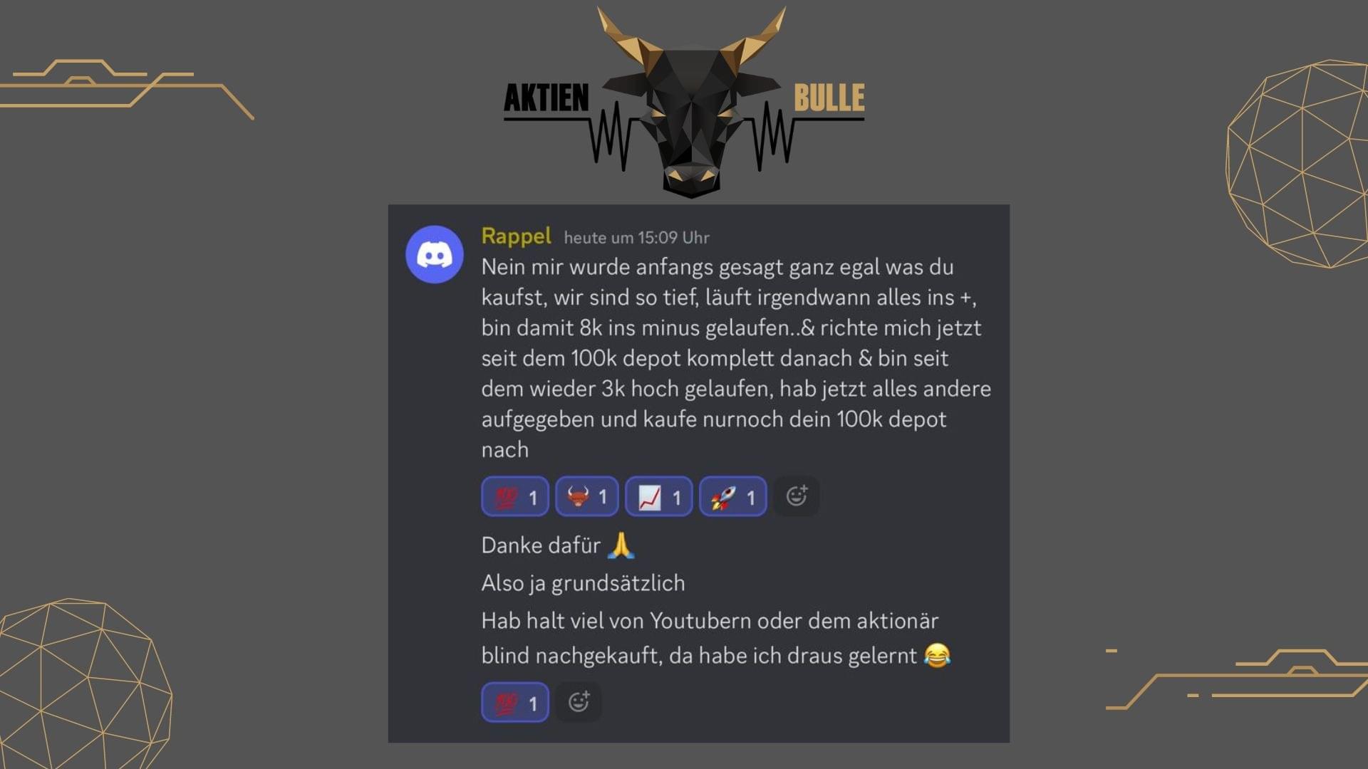 Du kannst von unserer Erfahrung und Expertise profitieren und verstehen, worauf es beim Trading wirklich ankommt. Das gibt dir die Selbstsicherheit den Trade strukturiert zu verfolgen und an deinem Plan festzuhalten.
